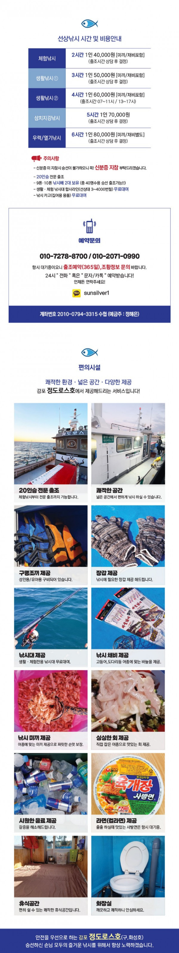 #정도로스 #경주선상낚시 #경주낚시배 #경주낚시 #감포낚시배 #열기낚시 #감포배낚시 #빅게임 #포항선상낚시 #고등어 #감포대삼치 #읍천대삼치 #대삼치 #대삼치지깅 #대삼치낚시 #포항대삼치 #튜나 #참다랑어 #정도로스호 #동해권 #동해안조황 1/2 새해 첫 오후 출항 미터오버 대삼치들~^^ (목,금,토,일-모집중입니다!) 경주대삼치 전문출조! 선장 정도로스입니다.^^ 금일오후 새해 대삼치 빅게임 첫 출항! 소수인원 모시고 다녀왔습니다. 이틀간 풍랑주의보 여파로 물색이 아직 흙물로 흥건하네요~ㅜㅜ 하지만 풍성한 멸치어군이 다시 유입되어 바이트후 몇수 터트리고 랜딩성공도 가능했습니다. 수온도 양호한 편이고.. 곧 맑은 물색이 돌아오면 괴물급 우당탕탕! 기대됩니다. 내일(수) 역시 필드여건이 별로라 쉬어가며 모래(목)부터 정상출항합니다. 현재 주중/주말 여유자리많으니 문의주시면 조황정보/예약 등 친절히 안내해드리겠습니다. 감사합니다. 고객감사 "무료승선권" 이벤트 진행합니다. *대상어종: 삼치/방어 *이벤트기한: 2023년 12월13일~2024년 1월 31일까지 *참여조건: 9명이상 승선시 매일/매회진행! (평일출조우대!) *길이계측: 매회 (평일) 출조시 (최대어 사이즈 (2명) 지급!) 매회 (주말) 출조시 (최대어 사이즈 (1명) 지급!) *사용조건: ~2024년 11월 30일까지 (평일/주말 사용가능!) 많은 참여 부탁드립니다.^^ *계절별 바다 상황에따라 출항시간 변동될수있습니다. *대삼치 전용장비렌탈가능! *메탈 구입가능! 선장정도로스 (010-7278-8700) *운용팁* 가을,겨울시즌은 매일 상황에따라 어군이 멸치또는 풀치로 바뀔수있으니.. 출조시 롱지그 한두개 정도 챙겨보시길..^^ *오전반 07시~12시 입항! *오후반 12시30분~17시30분 입항! *선비=>한타임7만원 *선비=>종일13만원 *대삼치전용(릴,로드포함) 장비렌탈요금-1만원 *왕초보님도 가능! *메탈지그 1개 무료지급! *다양한 메탈지그,펜슬,각종 소품 완비! *대형스트로폼박스구입가능! *쇼크리더,커피,생수,컵라면.장갑(무료제공) *카드결제가능! *독배예약환영! (상담후결정) *** 경주 정도로스호 예약 안내 *** 예약문의 : 010-7278-8700 오시는길 : 경북 경주시 감포읍 전촌리 1245-10 홈페이지 : http://jeongdoros.sunsang24.com/